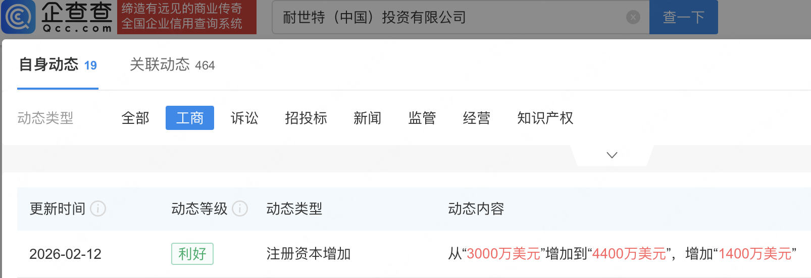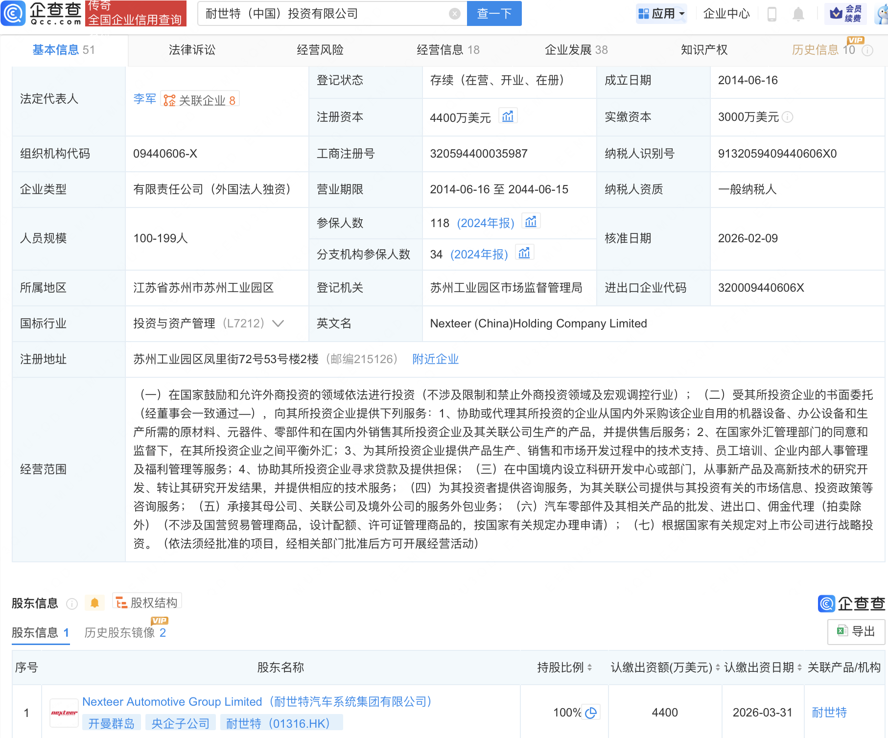 近日,耐世特(中国)投资有限公司发生工商变更,注册资本由3000万美元增至4400万美元。企查查信息显示,该公司成立于2014年,法定代表人为李军,由NexteerAutomotiveGroupLimited(耐世特汽车系统集团有限公司)全资持股。